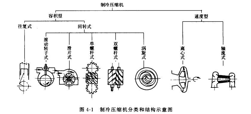 圖4—1表示了壓縮機分類及其結構示意圖。