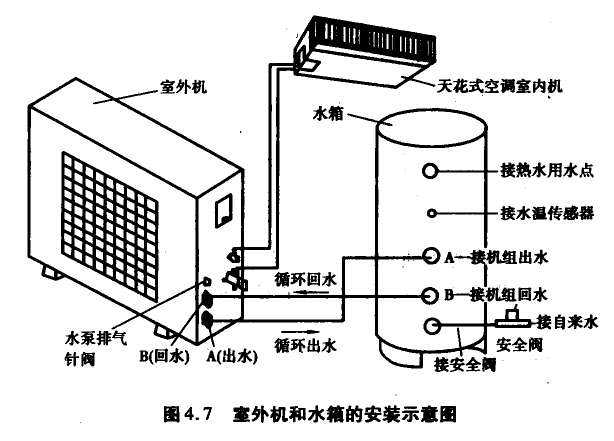 2)水箱靠近室外機安裝;距離小于5 m,以免水管太長導致水阻增加,造成流量變小。