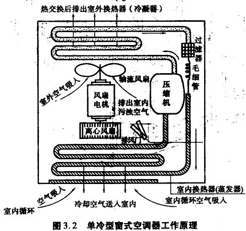 單冷型窗式空調器的工作愿理如圖3.2所示。