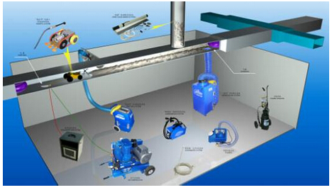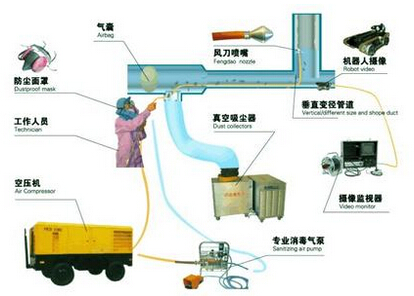 1. 用裝有攝相頭的機器人進入管道拍攝記錄風管內污染狀況;