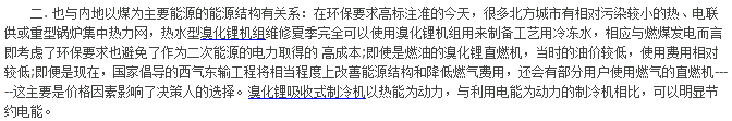 一. 是因為電力基礎設施建設跟不上,電力很緊張,造成供需矛盾,只好使用高污染、低效率的小型燃煤鍋爐就近制備蒸汽來驅(qū)動溴化鋰蒸汽型機組。