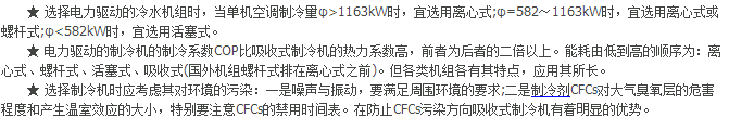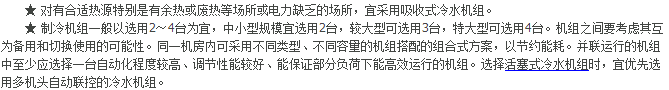 ★ 對大型集中空調系統的冷源,宜選用結構緊湊、占地面積小及壓縮機、電動機、冷凝器、蒸發器和自控組件等都組裝在同一框架上的冷水機組。對小型全空氣調節系統,宜采用直接蒸發式壓縮冷凝機組。