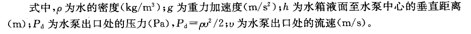 (2)系統(tǒng)開始運行的瞬間,動壓尚未形成,出口壓力等于靜水壓力與水泵全壓之和,即