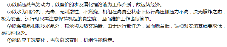 溴化鋰吸收式制冷機具有如下優(yōu)點: