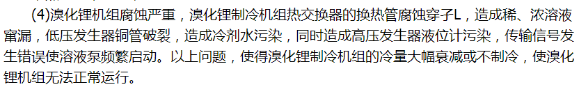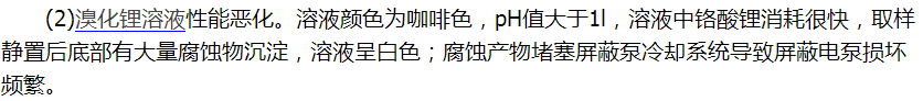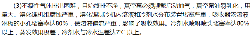 (1)機組運轉時內部各點壓力偏高,換熱器換熱不夠,均偏離了設計值,溴化鋰機組存有不凝性氣體,吸收的阻力增大,影響吸收器中的傳熱和傳質過程,進而影響溴化鋰機組的性能。