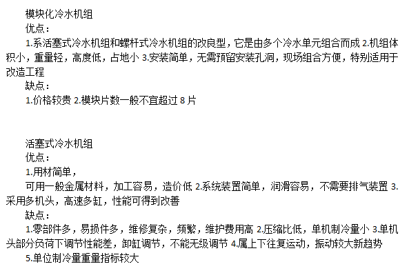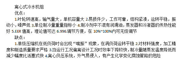 水冷螺桿機組、離心機組、溴化鋰吸收式冷水機組等優缺點