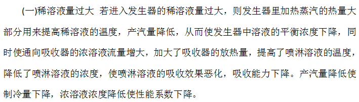 稀溶液量過小 若進入發生器的稀溶液量過小,其結果與上述情況相反。