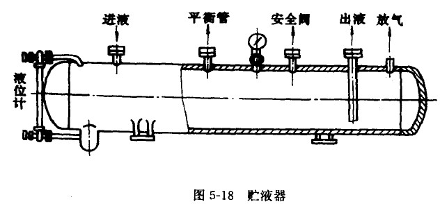 貯液器安裝在冷凝器之后,與冷凝器的排液管是直接連通的。其結(jié)構(gòu)如圖5-18所示。冷凝器中的制冷劑液體應(yīng)暢通無阻地流入貯液器內(nèi),這樣就可以充分利用冷凝器的冷卻面積。另一方面,當(dāng)蒸發(fā)器的熱負(fù)荷變化時,制冷荊液體的需要量也隨之變化,那時,貯液器便起著調(diào)劑和貯存制冷劑的作用。在檢修制冷系統(tǒng)時,可將系統(tǒng)中的制冷劑收集在貯液器中。