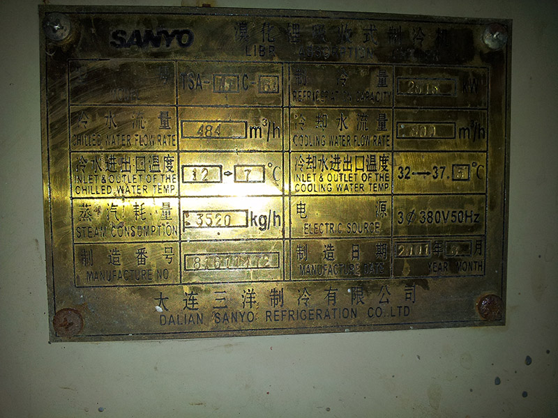 大連三洋溴化鋰制冷機(jī)240萬(wàn)大卡(TSA-NFC-61)一臺(tái),含全套配件,生產(chǎn)日期:2001年,制冷量:240萬(wàn)大卡/小時(shí),機(jī)器運(yùn)行狀況良好,可開(kāi)機(jī)試運(yùn)行。配套設(shè)施包括:水泵電機(jī)各4臺(tái),管路閥門等約20噸,冷卻塔大半新,配電箱兩個(gè)。燃油蒸汽鍋爐(蒸發(fā)量4T/H)一臺(tái),99年12月份生產(chǎn)。浮頭式熱交換器兩臺(tái),重量3.7T/臺(tái),換熱面積30平方米。