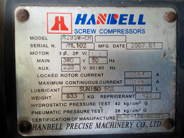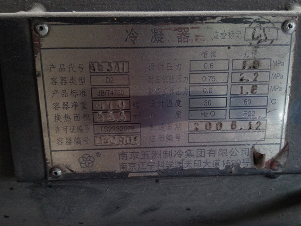 制冷機壓縮機頭:品名:漢中壓縮機 型號:R295W-CR 生產日期:2007年1月