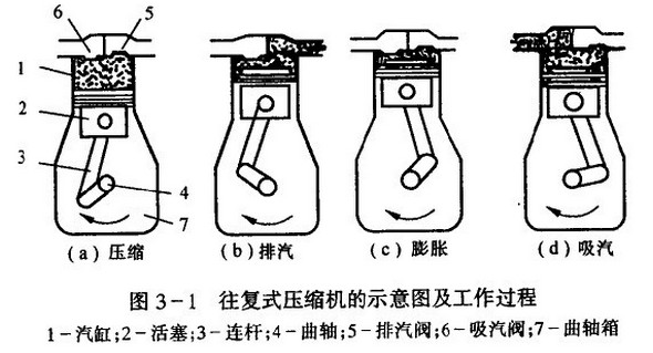 活塞型制冷機中的往復式壓縮機工作中的四個過程