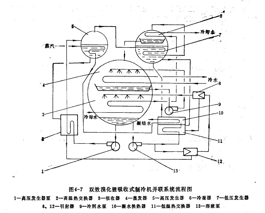 雙效溴化鋰吸收式制冷機并聯系統流程(附圖)