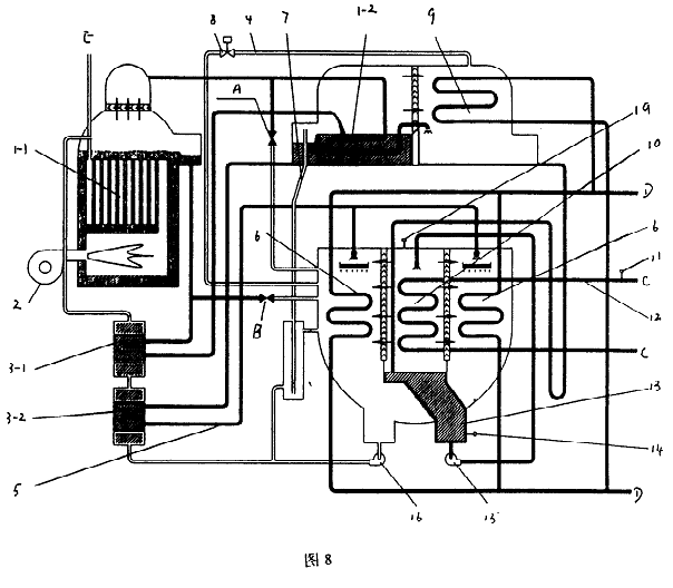 圖2—8為本實用新型的溴化鋰吸收式制冷機各實施例示意圖。