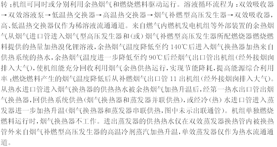 煙氣熱水補燃單雙效復合型溴化鋰吸收式制冷機的運行