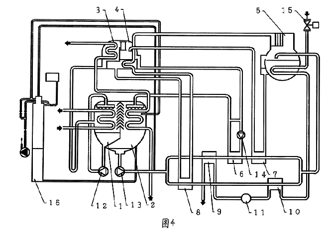 圖4為本發明的高效率蒸汽雙效溴化鋰吸收式制冷機組第二方式種循環流程圖。