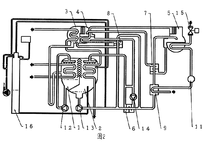 圖2為現有的蒸汽雙效溴化鋰吸收式制冷機組循環流程圖。