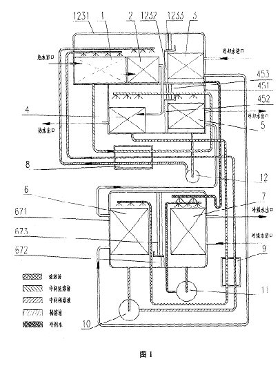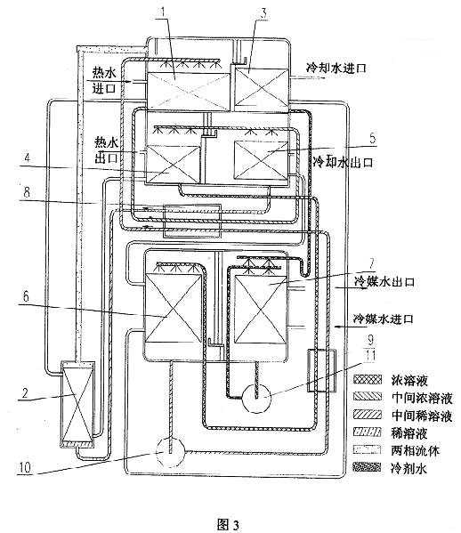 附圖說明介于單效與兩級之間的熱水型溴化鋰吸收式制冷機