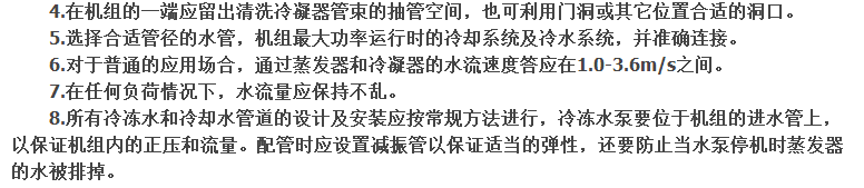 3.機組應放在室溫為4.4-43.3℃的機房內,機組的周圍和上方應有足夠空間,以便進行日常的維護工作。