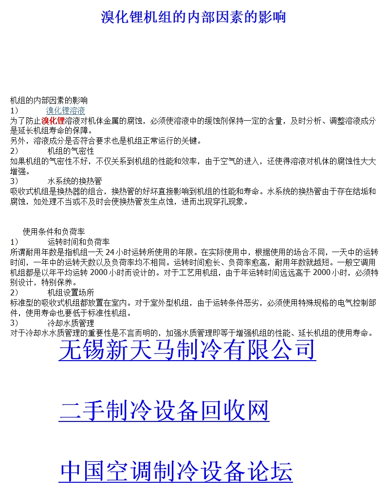 為了防止溴化鋰溶液對機體金屬的腐蝕,必須使溶液中的緩蝕劑保持一定的含量,及時分析、調整溶液成分是延長機組壽命的保障。