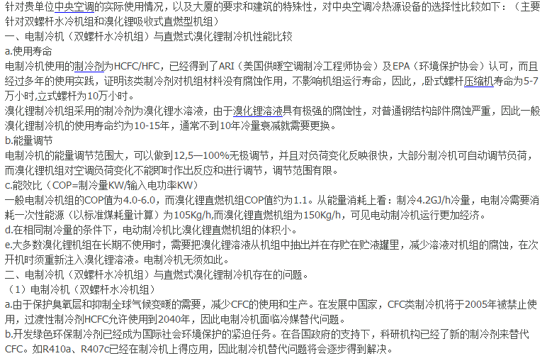 經過十多年我國經濟的高速發展,我國的能源結構發生了巨大的變化,舉世矚目的三峽工程已經開如蓄水,三峽水電站的發電機組將陸續投產發電,電力供應變得越來越充分,甚至富余。一些電廠由于賣不出電,全年大部分時間處于半停產狀態。電價逐步下降,昂貴的電力增容費已經被取消,從而應用電制冷機的費用大幅度下降。與此相反,油和天燃氣是有限的一次性能源,不可再生,同時收國際局勢影響存在不明穩定因素,而且價格逐年呈上漲趨勢.此外,溴化鋰吸收式制冷機經過十來年的使用,其結構存在的問題日益顯現出來:污垢堵塞噴嘴或淋板,或沉積在發生器、吸收器和換熱器管上,造成制冷量下降,能耗增大,使用壽命縮短。