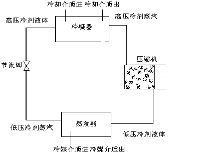根據熱力學的基本原理我們知道,一般的制冷循環由四個主要部件組成:壓縮機、冷凝器、節流閥和蒸發器,其制冷原理如下(圖1)