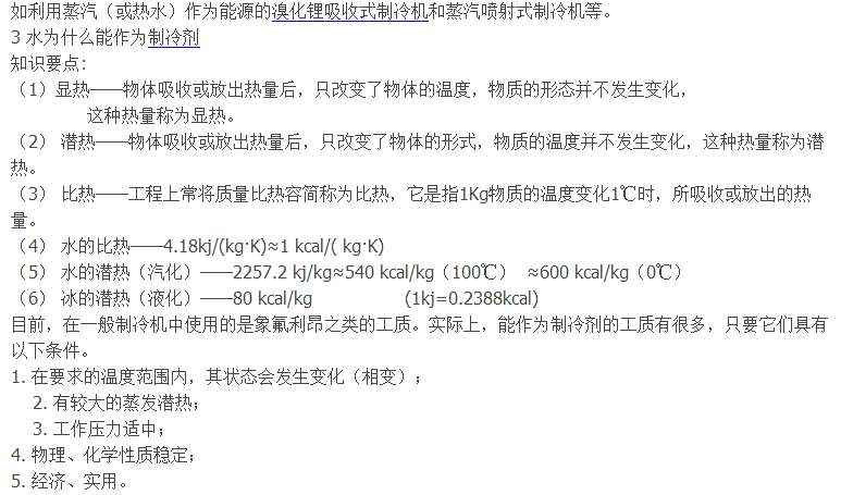 (2)冷凝——物質由氣態轉變為液態叫液化,在制冷技術中所說的冷凝就是液化。