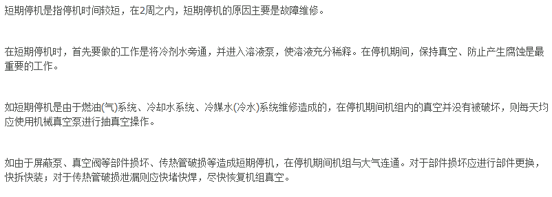 掌握溴化鋰吸收式恒溫恒濕空調制冷機組(冷熱水機組)停機后維護保養的方法與步驟。