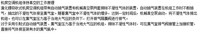 了解所用壓力測量儀器的原理,拿握其使用方法;機房空調了解溴化鋰吸收式機房空調機組保持真空的工作原理,掌握溴化鋰吸收式機房空調真空檢查、抽氣操作的方法與步驟。