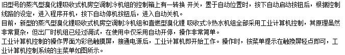 溴化鋰吸收式機房空調制冷機組(冷熱水機組)的啟動和關機有手動和自動兩種,正常運行時的開停機應采用自動方式,機組調試和應急開停機時應采用手動方式。